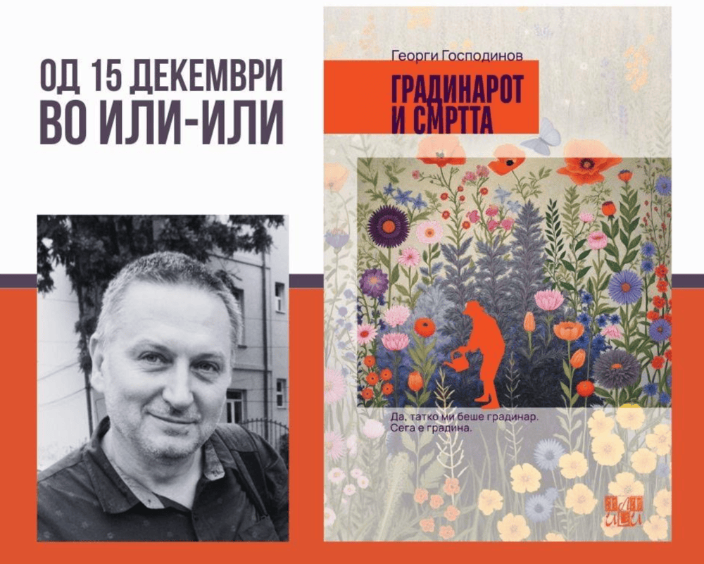 Книга на годината во Полска според „Gazeta Wyborcza“, книга на годината во Германија според „SWR“, и уште безброј успешни преводи, промоции и рецензии ширум светот во текот на 2025 година… „Градинарот и смртта“ од Георги Господинов, една од најзабележителните објави која веќе фигурира на листите на најуспешни прозни дела за 2025 година, конечно, и на македонски јазик, во превод на Душко Крстевски. Од денес достапна и за домашните читатели во издание, се рабира, на „Или-Или“.