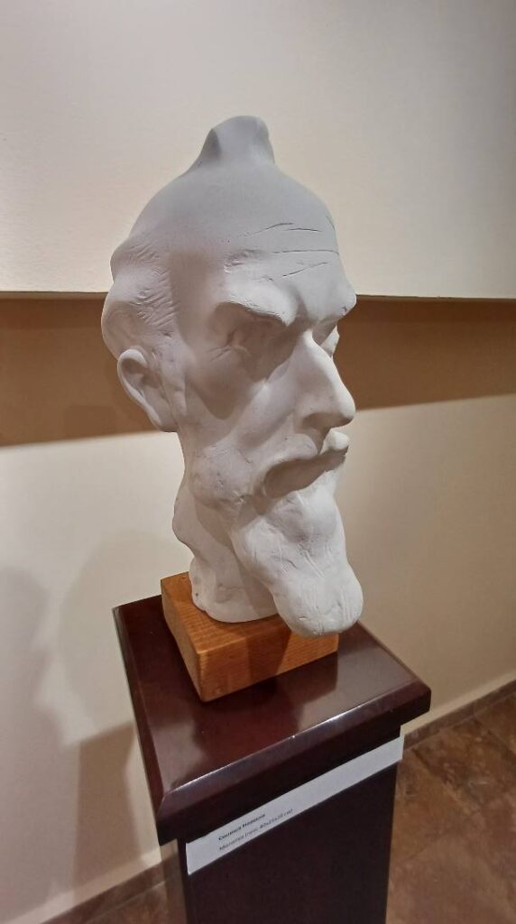 Освен диптихот и триптихот како специфики, единствената скулптура (во гипс) на изложбата е дело на Синиша Новески, за која Милков нагласува: „Новески не бара анатомска точност, туку духовна суштина: образот Божји што се препознава однатре, преку срцето. Комбинирајќи модерна експресија со византиски иконопис, создава вертикално издолжен лик со аскетска благородност и целосна хармонија“.