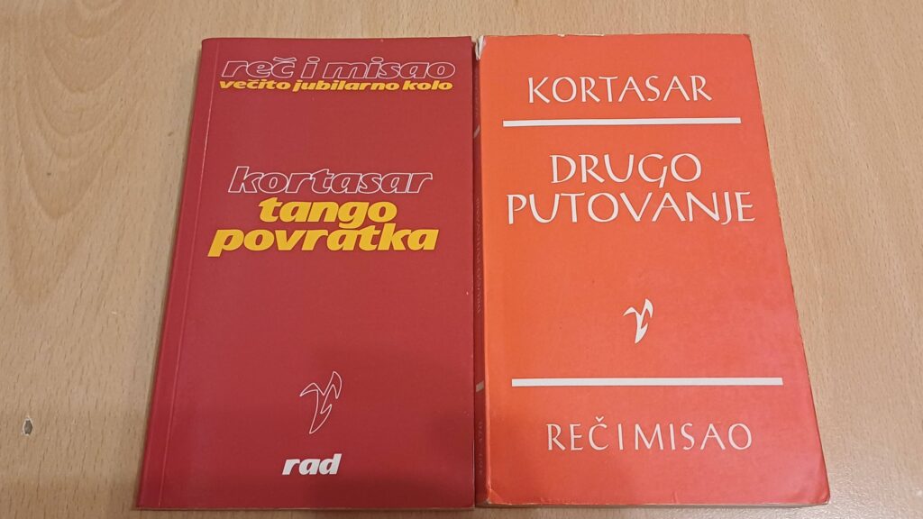 Отсекогаш многу повеќе сум го сакал Кортасар отколку Борхес. Затоа почесно место во домашната библиотека, покрај „Куцкамен/Школице“, заземаат и неговите раскази од едицијата „Збор и мисла“. Како контрапункт, го приложувам и Маркес во сина варијанта.