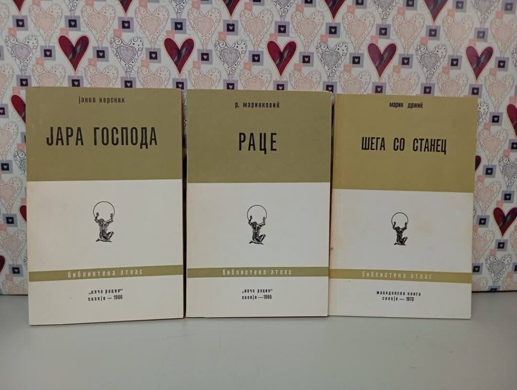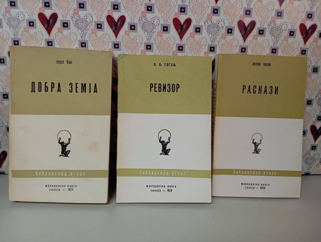 ОК, одиме понатаму. Неколку години подоцна, македонската издавачка куќа „Македонска книга“, оформена во 1947 година, создаде своја џебна едиција⁸ и ја наслови „Атлас“, со препознатливото лого на насловната корица. Во неа свој простор најдоа актуелните дела на македонските писатели, на нивните колеги од останатите југословенски републики, и се разбира, преводите на класиците, но и на современите светски автори. Сугестивната зелено-бела корица беше препознатлив декор во македонските домашни библиотеки, криејќи зад страниците цело книжевно богатство – на македонски јазик!!!